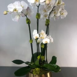 Price: $175.00Modern Quad phalaenopsis Orchid with nestled mini double orchid
